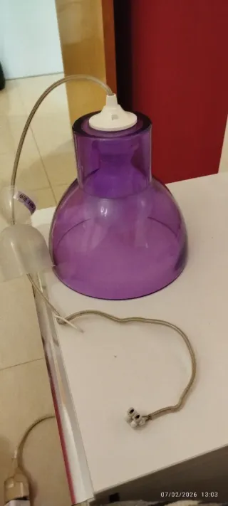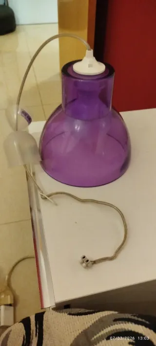 Lámpara colgante morada de cristal y plástico