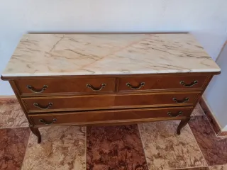 Cómoda de madera con tapa de mármol