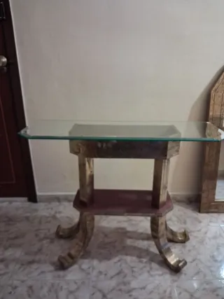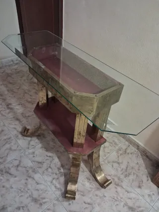 Mesa consola dorada cristal