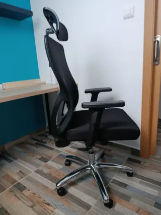 Silla de oficina con un diseño moderno y cómodo. Tengo 4 sillas iguales. - Respaldo de malla transpirable. - Asiento acolchado. - Brazos ergonómicos.