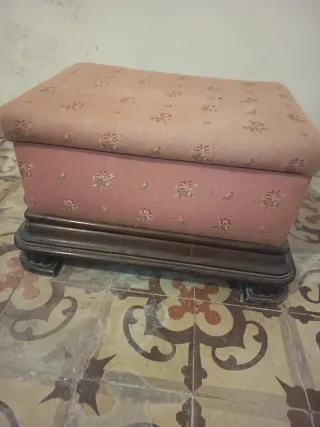 Descalzadora antigua con un diseño clásico y elegante. Perfecta para añadir un toque de estilo a cualquier habitación. - Tapicería con estampado floral. - Base de madera robusta.