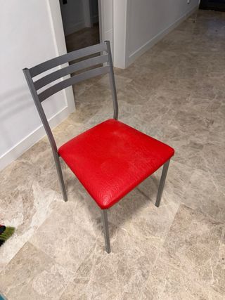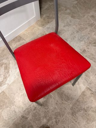 Conjunto de sillas con asiento rojo y estructura metálica. - Asientos de polipiel. - Patas de metal.