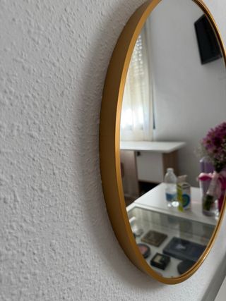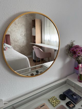 Elegante espejo redondo con marco metálico. - Medidas: 60x60cm. - Diseño moderno y minimalista.