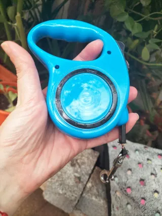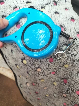 NO ENVIO POR CORREO ( mejor punto pack)70correa retráctil para mascotas y manta. - Correa retráctil de color azul. - Manta con diseño multicolor de lunares.