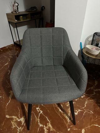 Se venden 6 sillas de comedor con un diseño moderno y elegante. Son cómodas y aportan un toque de estilo a cualquier espacio. - Tapicería de tela. - Patas de metal resistentes. Precio por silla 85€, el conjunto 510€. Precio algo negociable