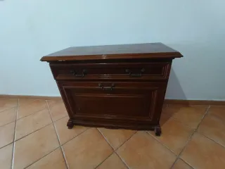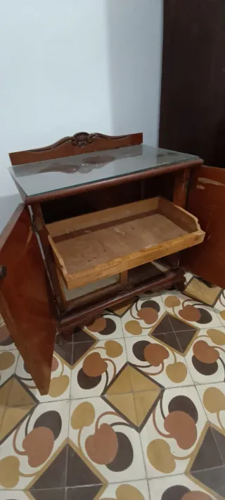 Conjunto armario y mesita madera antigua