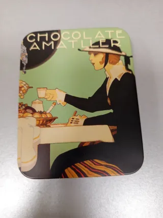 Bonita caja vintage con un diseño artístico. - Ilustración de una mujer tomando té. - Motivos florales y geométricos. - Ideal para coleccionistas o como elemento decorativo. -Mide 12 cm de alto, x 9'5 de ancho 2'3 cm de fondo