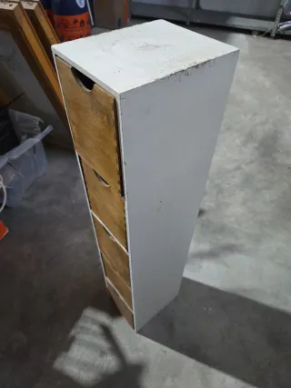 Armario estrecho con cuatro cajones de madera. - Diseño vertical que ahorra espacio. - Acabado en blanco y madera natural. A pintar!!
