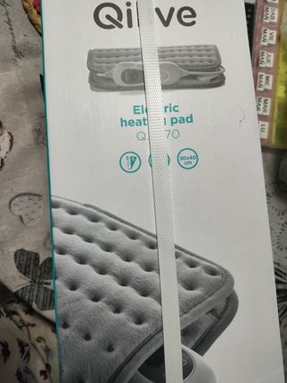Almohadilla eléctrica para cuando sufrimos dolores lumbares, dorsales, etcétera Medidas de 30 X 40, 3 potencias de calefacción, cables extraíbles, lavable en lavadora, tejido de forro polar, parada automática ajustable en 1, 5 h, limitador de temperatura. Precintada sin abrir. Más cositas en mi perfil