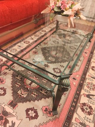 Preciosa mesa de centro de forja y cristal. Es una pieza elegante y en buen estado. - Medidas: 122cm x 62cm - Ideal para salón o sala de estar