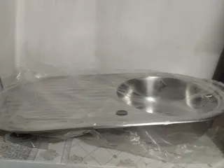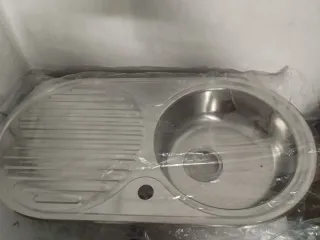 Fregadero de acero inoxidable con cubeta y escurridor. - Diseño moderno y funcional. - Acabado brillante. - Resistente a la corrosión.