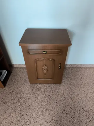 Mueble de madera con un diseño clásico y elegante. - Puerta con tirador dorado. - Detalle tallado en la puerta.