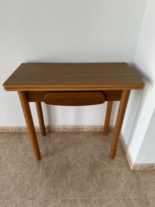 Plegable con cajón, cerrada mide 40 × 85 y abierta 80 × 85.