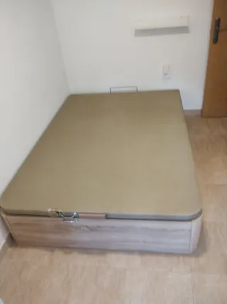 Canapé de madera en buen estado, con colchón incluido. - Medidas: 190 cm de largo x 135 cm de ancho. - Estructura de madera robusta. - Colchón cómodo y bien conservado.