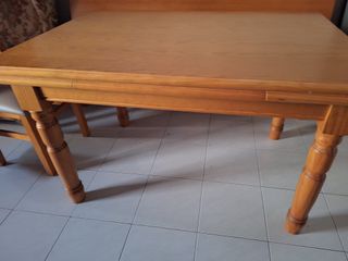 Mesa de comedor robusta y elegante, fabricada en madera de pino macizo. - Diseño clásico y atemporal. - Patas torneadas que aportan un toque de distinción. - Superficie amplia para disfrutar de comidas. - Acabado natural que resalta la veta de la madera. Escucho ofertas serias.