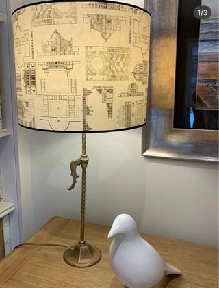 Se venden dos bases para lámparas de mesa con un diseño elegante. Portalámparas con encendido por tracción de cadena. - Bases de mármol con detalles dorados. - Cuerpo central de madera veteada. - Portalámparas metálico.