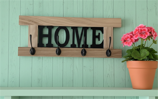 Perchero de Pared "HOME" de Madera y 4 Ganchos