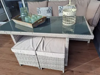 Conjunto de terraza ratán y cristal