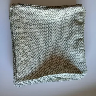 Conjunto de fundas para cojines con un bonito estampado. - Diseño con pequeños motivos. - Tonos beige y verde. - Diferentes tamaños (6 cuadrados, 3 rectangulares) - Nuevos, nunca se han usado.