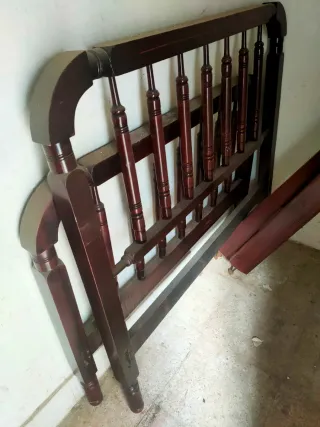 Estructura de cama de madera con un acabado oscuro y elegante. - Fabricada en madera resistente. - Diseño clásico con barrotes verticales.