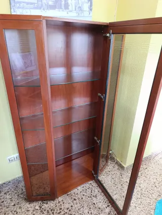 Vitrina de roble y cristal con 3 estantes muy bien