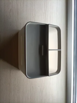 Práctica caja organizadora con un diseño moderno. - Color beige y gris. - Fabricada en plástico resistente. - Espacio con dispensador de pañuelos