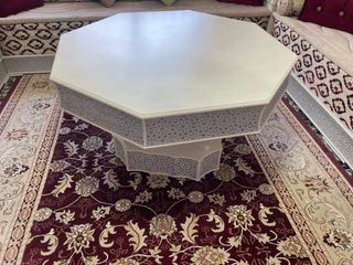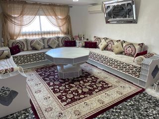 Conjunto de salón marroquí incluido las cortinas los cojines y el cuadro la alfombra todo lo que sale el la foto y con una combinación de colores beige y rojo. - Estructura de madera. - Tapicería de tela. - Diseño con cojines. - Mesa de centro esta en buenas condiciones cualquier consulta sin compromiso