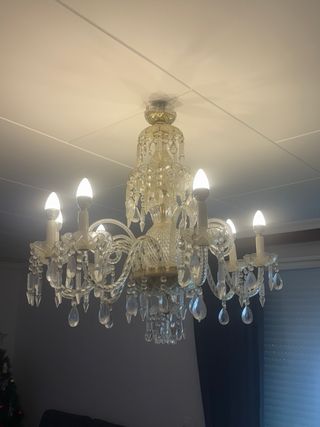 Lámpara antigua 8 bombillas cristal y dorado