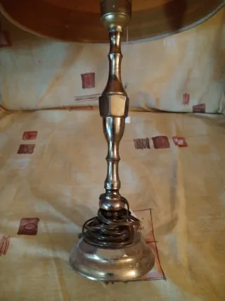 Elegante lámpara de mesita de noche con un diseño clásico y un acabado metálico que aporta un toque de distinción. - Base y cuerpo de metal. -