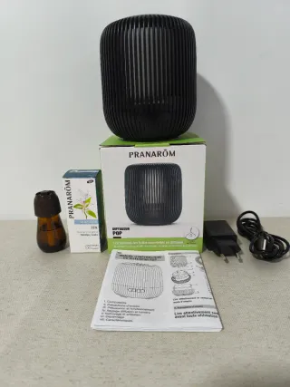 Se vende difusor de aceites esenciales Pranarom POP, en color negro. Incluye dos botellas de aceites esenciales de regalo. - Difusor con diseño moderno. - Incluye 2 botellas de aceites esenciales.