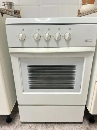 Cocina de la marca Balay en color blanco. - Diseño moderno y funcional. - Mandos de plástico de fácil manejo.