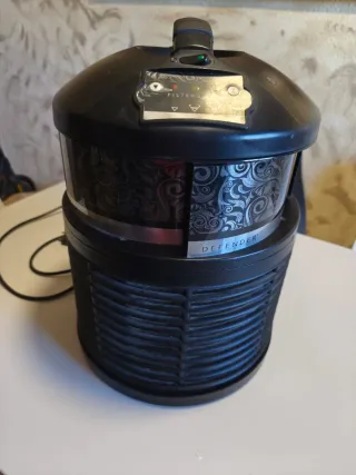 Purificador de aire Defender en color negro y plata. Un diseño elegante para tu hogar. - Filtro de aire. - Panel de control superior. De muy buenas calidad.