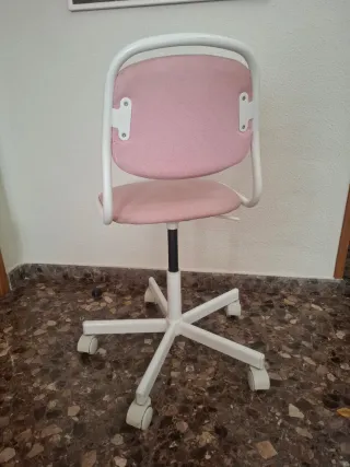 Silla de escritorio Ikea rosa y blanca infantil