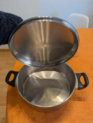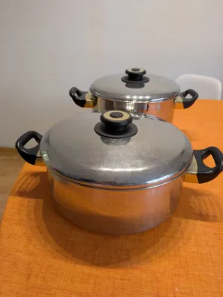 Set de dos ollas de acero inoxidable, casi nuevas. Han sido utilizadas solo un par de veces. - Diseño elegante y duradero. - Asas ergonómicas para un agarre cómodo.