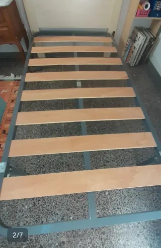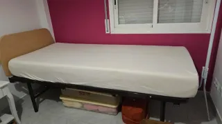Se vende conjunto de somier, cabecero y colchón. - Estructura del somier de metal. - Láminas de madera. - Colchon lado invierno/verano - Pueden adquirirse por separado - Somier 15€ + regalo cabecero - Colchon 10€ como nuevo sin manchas