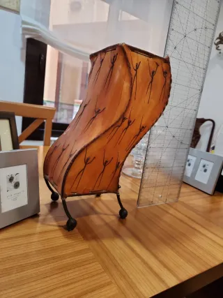 Auténtica lámpara de estilo marroquí bereber, con un diseño único. - Elaborada en cuero y metal. - Tonos marrones y negros.