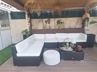 Conjunto Sofá Exterior Ratán Negro y Blanco