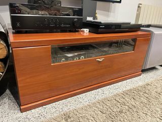 Mueble de con un diseño elegante y funcional. - Acabado en madera de cerezo. - Puerta con cristal templado. - Compartimento interior para equipos electrónicos.