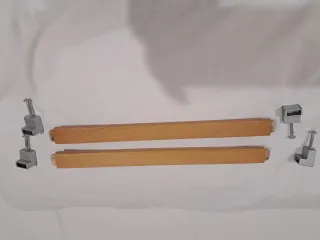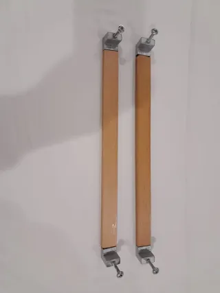 Conjunto de dos tiradores con un diseño moderno que combina metal y madera. - Materiales: Metal y madera. - Incluye dos unidades.