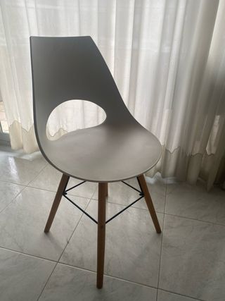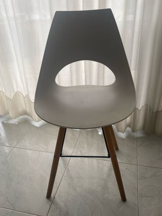 Conjunto de cuatro sillas de comedor con un diseño moderno y elegante. Perfectas para tu hogar. 25€ cada una o 100€ las cuatro!!! - Asiento y respaldo de plástico. - Patas de madera. - Estructura resistente y duradera. - Soportan hasta 120kgs.