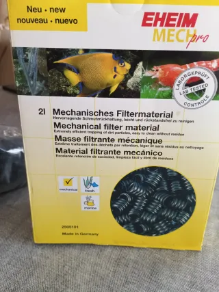 Material filtrante mecánico Eheim Mechpro de 2 litros para acuarios. Ayuda a mantener el agua limpia y clara. - Excelente para atrapar partículas de suciedad. - Fácil de limpiar sin dejar residuos. - Apto para acuarios de agua dulce y salada.
