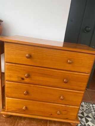 Mueble de madera con varios cajones. - Diseño clásico y funcional. - Tiradores redondos de madera.