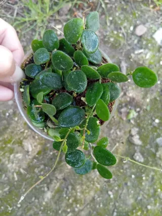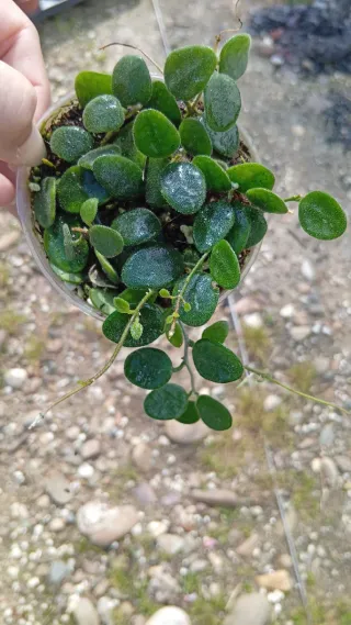 Planta Hoya Serpens en maceta. - Hojas pequeñas y redondas. - Tallo colgante.