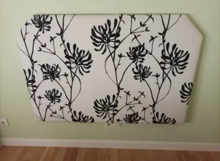 Set de cabecero y mesilla de madera a juego con diseño floral - Cabecero con forma, mide 140x96 cm - Mesilla vestida a juego.