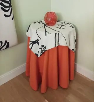 Pequeña mesa auxiliar o mesilla de madera. Ideal para colocar junto a un sofá, mesa de comedor o como mesilla de noche. - Tablero redondo. Diámetro 40 cms - Patas de madera cónicas, desmontables para almacenar fácilmente.