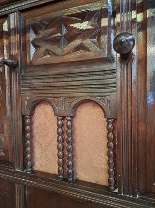 Antiguo Colgador paragüero sombrerero de madera. Altura 1,79, las otras medidas en las fotos. muy antiguo, con las cortinillas originales. Tiene restos de haber tenido carcoma en la parte inferior como se vé en una de las fotografias