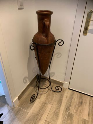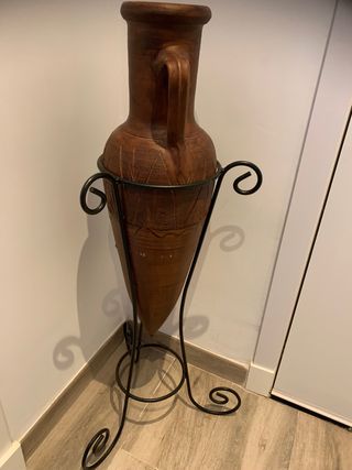 ÁNFORA CON PIE DE FORJA, preciosa para utilizar como paragüero, etc