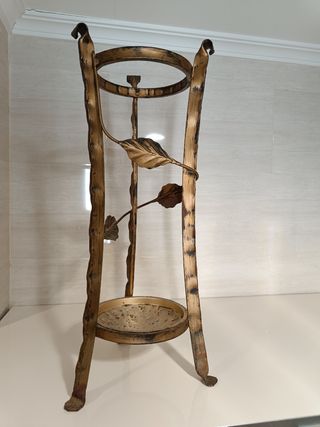 PARAGUERO DE FORJA DORADO, AÑOS 60 70. Altura 50cm Distancia entre patas 33cm Diametro 23cm Oxido en las patas y el interior, ver fotos. VINTAGE MID CENTURY BRUTALISTA LAMPARA ESPEJO SOL BASTONERO MIDCENTURY BRUTALISML MODERN DISEÑO HOLLYWOOD REGENCY