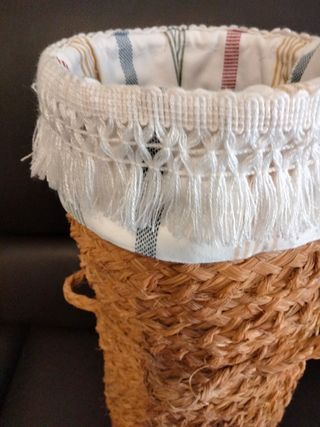 Precioso paragüero con macetero de estilo vintage. Ideal para decorar cualquier rincón de tu hogar. - Estructura de metal con detalles calados. - Cesta de mimbre resistente y bien conservada. - Diseño elegante y funcional.