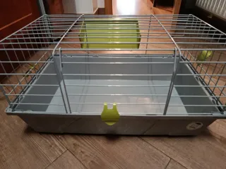 Jaula espaciosa para cobayas o conejos pequeños. Cuenta con una base sólida y una estructura de alambre para una buena ventilación.Tambien dispone de bandeja para el heno - Base de plástico resistente. - Rejas de alambre. - Cierre de seguridad.